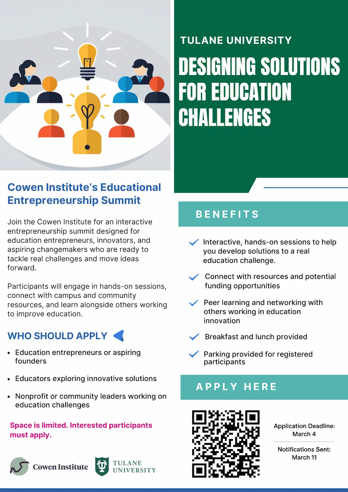 Join the Cowen Institute for an interactive entrepreneurship summit.