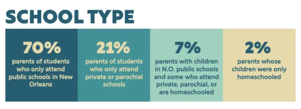 This brief covers general perceptions about New Orleans K-12 public education; the second brief will delve more deeply into specific areas of education. To capture the experiences and attitudes of a wide range of parents, as we have done since 2020, we polled 1,000 public and private school parents and guardians in Orleans Parish, as well as a small number who homeschool their children.